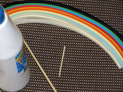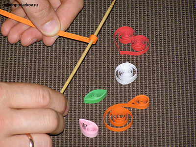 Берем бумагу для квиллинга, наматываем ее на зубочистку, формируя нужный узор (как показано на фото).