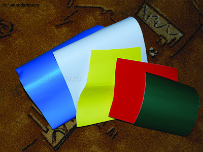 Для того, чтобы квадрату придать нужный нам цвет, для этого используем - оракал, у нас есть 5 цветов: краный, белый, синий, зеленый и желтый. Вырезаем их по размеру 15 на 15 см. И приклеиваем на основу пластика.