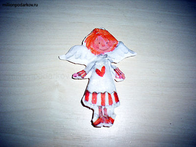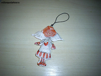 Покрываем поделку лаком и надеваем в колечко основу для брелка. Вот такой ангел у нас получился в итоге.
