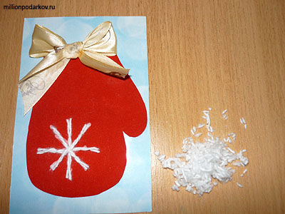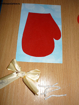 Новогодние поделки из картона и ниток "Открытка-варежка"
