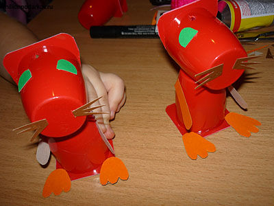 Склеиваем голову и туловище, приклеиваем детали из картона