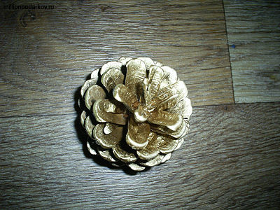 Красим шишку золотой аэрозольной краской.