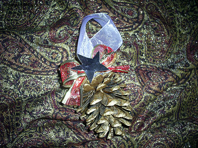Новогодняя поделка из шишки «Игрушка на елку»
