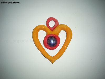 Новогодняя поделка из соленого теста «Елочная игрушка 'Сердце с бриллиантом'»