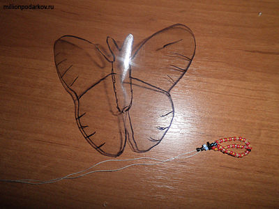 Вырезаем ножницами и начинаем делать бабочку, нанизывая бисер.