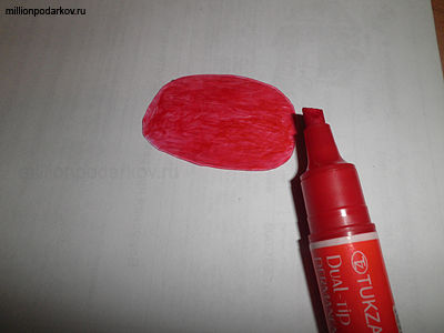 Вырезаем ножницами и раскрашиваем красным маркером с обоих сторон полученную деталь.