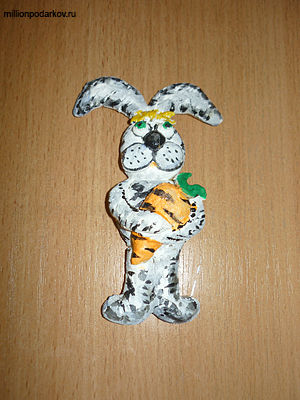 Объемные поделки из теста "Заяц с морковкой"