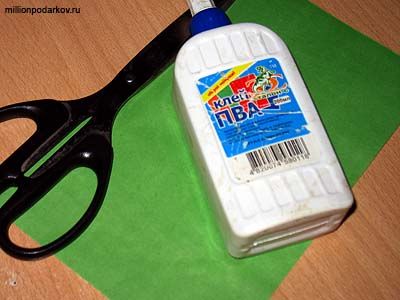 Материалы этой работы очень просты: зеленая бумага, ножницы и клей ПВА.