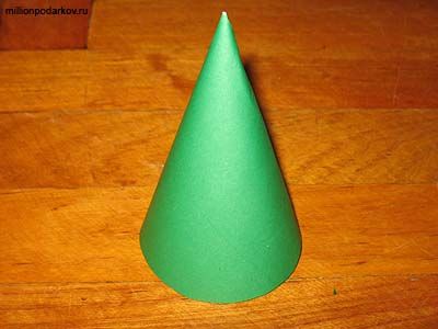 Обклеить петельками весь конус. Украсить вершину бантиком.