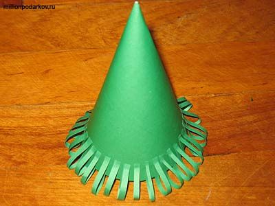 К конусу приклеиваем петельки из полосочек по всей окружности конуса.