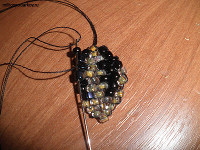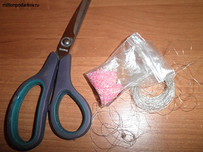 Для того, чтобы сделать объемную поделку из бисера по схеме, нам понадобится бисер трех цветов, нитки, иголка и ножницы.