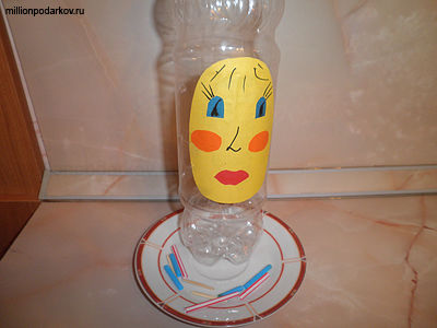 Объёмные поделки из пластиковых бутылок для детей очень актуальны и просты в исполнении. Из обычной 1,5 литровой бутылки можно сделать оригинального клоуна, которого маленький ребенок будет с радостью кормить, развивая мелкую моторику рук.