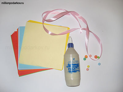 Приготовьте бумагу для оригами или двустороннюю цветную бумагу нарежьте на ровные квадраты.
