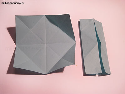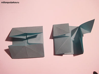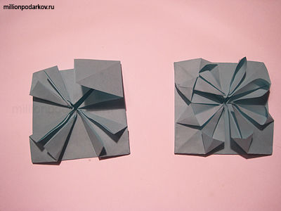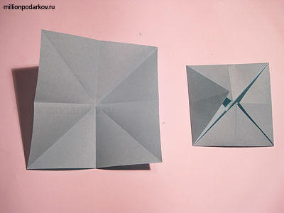 Снова складываем края к центру. Получился квадрат. Расправьте уголки наружу.