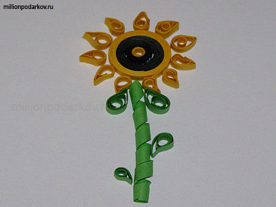 Оригинальная поделка из бумаги "Подсолнух" выполнена в увлекательной технике бумагокручения-квиллинг.Композиция "Подсолнух" напомнит нам о летних днях.