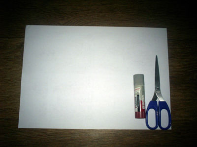 Для поделки нам понадобится все лишь обычный белый лист бумаги А4, клей и ножницы.
