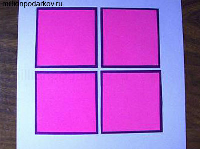 Теперь украсим лист картона цветными квадратами, на которые будут крепиться наши цветы.