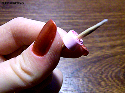 Снимаем заготовку с зубочистки и даем ей чуть-чуть раскрутиться. Приклеиваем свободный конец. Таким образом делаем 24 заготовки.