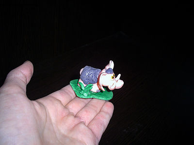 Соединяем все детали вместе. Делаем из телесной пластики бивни, ушки и хвостик, а из серой – шерсть на туловище, когти на лапках и хохолок на голове. Из кусочка желтой и черной пластики делаем глазки мамонтенка. В работе помогаем себе стеком или зубочисткой. Сушим поделку в соответствии с инструкцией по работе с данным пластиком. В нашем случае варим ее в течении 15 минут.