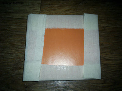 Из ватмана вырезаем квадрат, такого же размера делаем деталь из синтепона. Деталь из ткани делаем больше на 5 см.