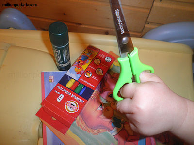 Для того, чтобы сделать поделку - аппликацию для мальчиков, нам понадобится лист альбома, клей, ножницы и карандаши. Маленькому ребенку будет удобнее использовать клей-карандаш.
