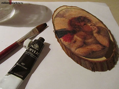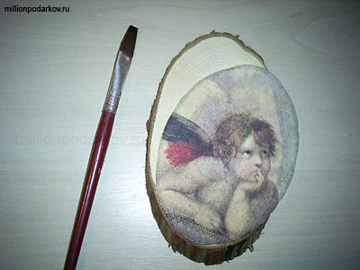 Сегодня мы расскажем, как делать поделки по дереву в технике декупаж. В этих целях можно с успехом использовать трехслойные салфетки с подходящим рисунком. Давайте сделаем вот такую картинку с ангелом.