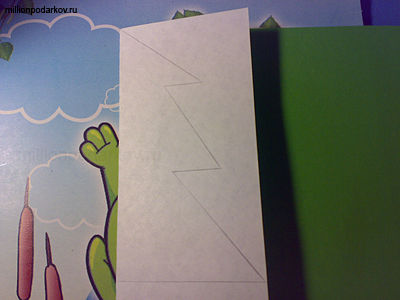 Сложите лист зелёной бумаги напополам и нарисуйте, с помощью карандаша и линейки контур ёлочки.