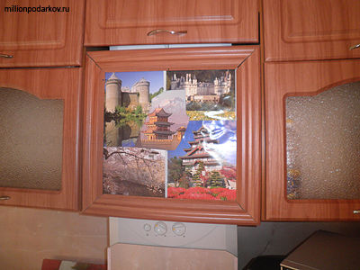 Подвешиваем за ниточку, можно даже разместить коллаж так, чтобы закрыть какие-то несовершенства.