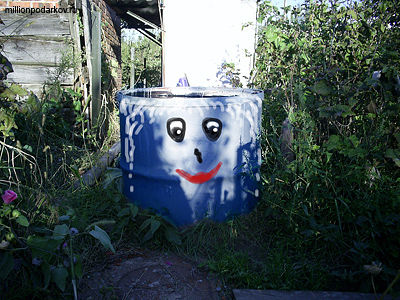 Поделка для дачного участка своими руками «Бочка для воды 'Человечек'»
