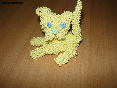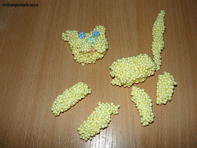 Поделка для детей младшего возраста из шарикового пластилина "Желтый котик"