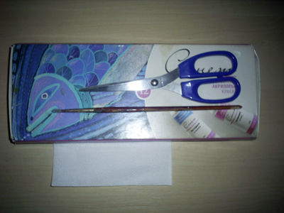 Нам понабиться салфетка, палочка, клей, ножницы и по желанию краски.