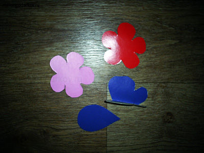 Из цветного картона вырезаем цветочки, бабочек, капельки.
