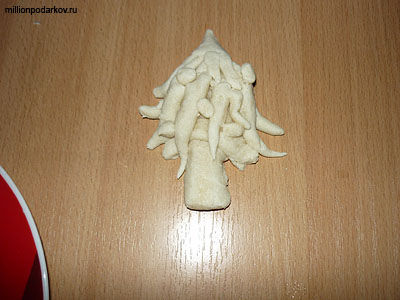 Лепим фигурку елочки из теста. Ставим фигурку в духовку и сушим при температуре 50 градусов. Либо просто сушим изделие на воздухе в течении суток.