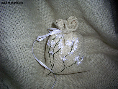 Поделка из атласных ленточек «Аромо-саше с вышивкой»