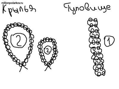 Руководствуясь данной схемой, сплетите туловище и крылышки насекомого.