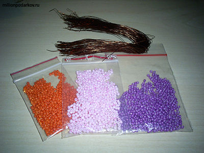 Итак, для того, чтобы сделать стрекозу, приготовьте бисер двух цветов – один цвет для туловища, а другой для крылышек.