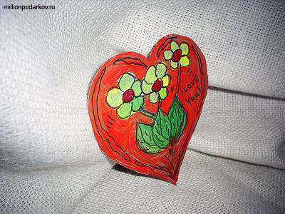 Кладем сердце под пресс, чтобы разровнять его. Тонким предметом, например скрепкой рисуем контур рисунка с обратной стороны поделки. Получается гравюра. Разукрашиваем сердце акриловыми красками. Нарисуем цветы, напишем признание в любви. В результате у нас получилась забавная валентинка. Теперь с ней можно делать все, что угодно. Например, наклеить на обратной стороне лист бумаги и написать слова пожелания. Также можно прикрепить к ней атласную ленточку или приклеить бусины. Такие поделки из бросового материала можно дарить любимым людям, которые обязательно оценят ваше старание и желание сделать подарок своими руками.