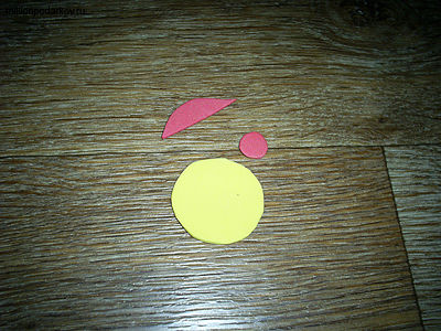 Готовим детали поделки. Так из желтой флексики вырезаем личико смайлика, из красной – его носик и шапочку.