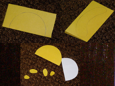 Что-бы выполнить поделку из бумаги "Фруктовая фантазия" нам необходимо взять листы бумаги необходимого цвета и нарисовать шаблоны с помощью карандаша.После чего мы вырезаем наши нарисованные шаблоны.