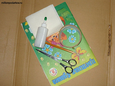 Приготовьте цветную бумагу, картон, клей, салфетки, ножницы, скотч.