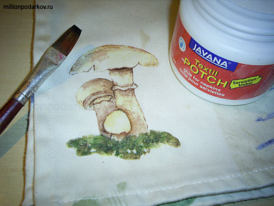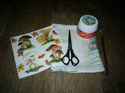 Поделка из бумаги и ткани «Декупаж по ткани ‘Салфетка с грибом’»