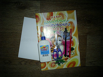Итак, для того, чтобы сделать простую праздничную открытку, нам понадобится белый картон, цветная бумага, ножницы и фломастеры.