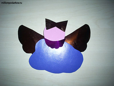 Вырезаем из флексики круг-голову, из картона – облако, крылья и бантик – из металлизированной цветной бумаги.