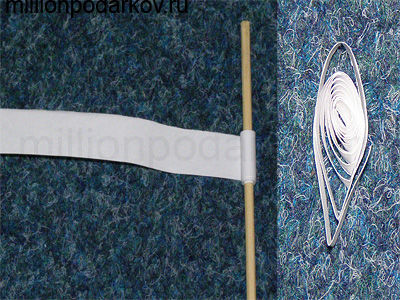 Для нашей поделки из бумаги квиллинг, нарезанные полоски бумаги толщиной 3 мм закручиваем на иголочку (я накручивала на зубочистку). после чего распускаем заготовку и формируем нужный узор.