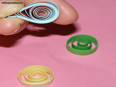 Для изготовления поделки из бумаги квиллинг "Волшебный цветочек" мы берём бумагу для квиллинга наматываем ее на зубочистку (как показано на фото), после чего распускаем её до нужной нам формы и закрепляем с помощью клея.