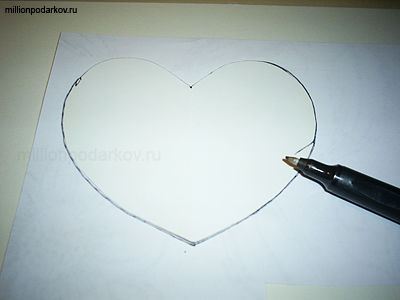 Приклеиваем сердца так, как показано на фотографии. Черным маркером нарисуем черточки, чтобы получился эффект того, что они пришиты.