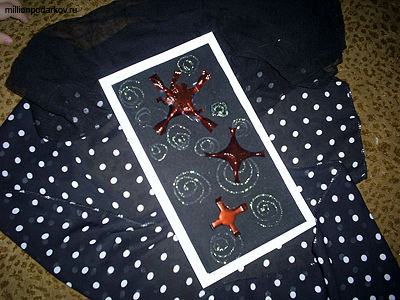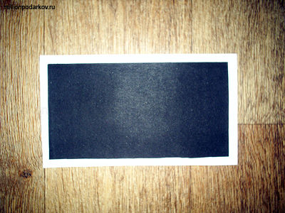 Вырезаем из черной бархатной бумаги и белого картона два прямоугольника разных размеров. Приклеиваем черную деталь к белой на двухсторонний скотч.