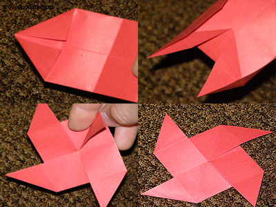 Поделка из бумаги своими руками "Вертушка" выполняется довольна просто для этого мы возьмём лист бумаги сложим его по-полам, затем каждую сторону загнём к средине для получения прямоугольника.После чего мы сложим верхние части в треугольник как показано на фото.Потом мы развернём наш треугольник как показано на фото для получения нужной нам заготовки, и потом формируем поделку.