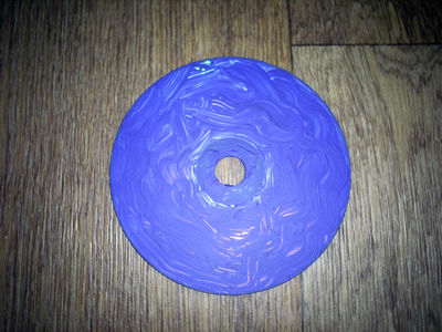 Красим диск акриловыми красками в синий цвет. Это у нас будет озеро. Благодаря тому, что красится блестящая сторона диска, краска начинает по-особенному переливаться, создавая иллюзию водной поверхности.