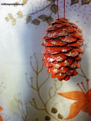 Приближается Новый год, в магазинах продают мишуру, гирлянды, ёлочные игрушки, чувствуется радостное дыхание праздника. Предлагаю вам попробывать сделать из простой еловой шишки красивую ёлочную игрушку. А как это сделать вы прочтёте в этой статье.